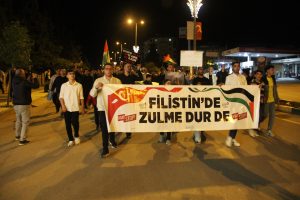 Yürüyüş boyunca çeşitli pankartlar taşınırken, Gazze için dualar edildi. Katılımcılar, birlik ve dayanışma içinde yürüyerek Filistin halkına destek mesajı verdi. Etkinlik, duygusal anlara sahne olan sinevizyon gösterimiyle devam etti.