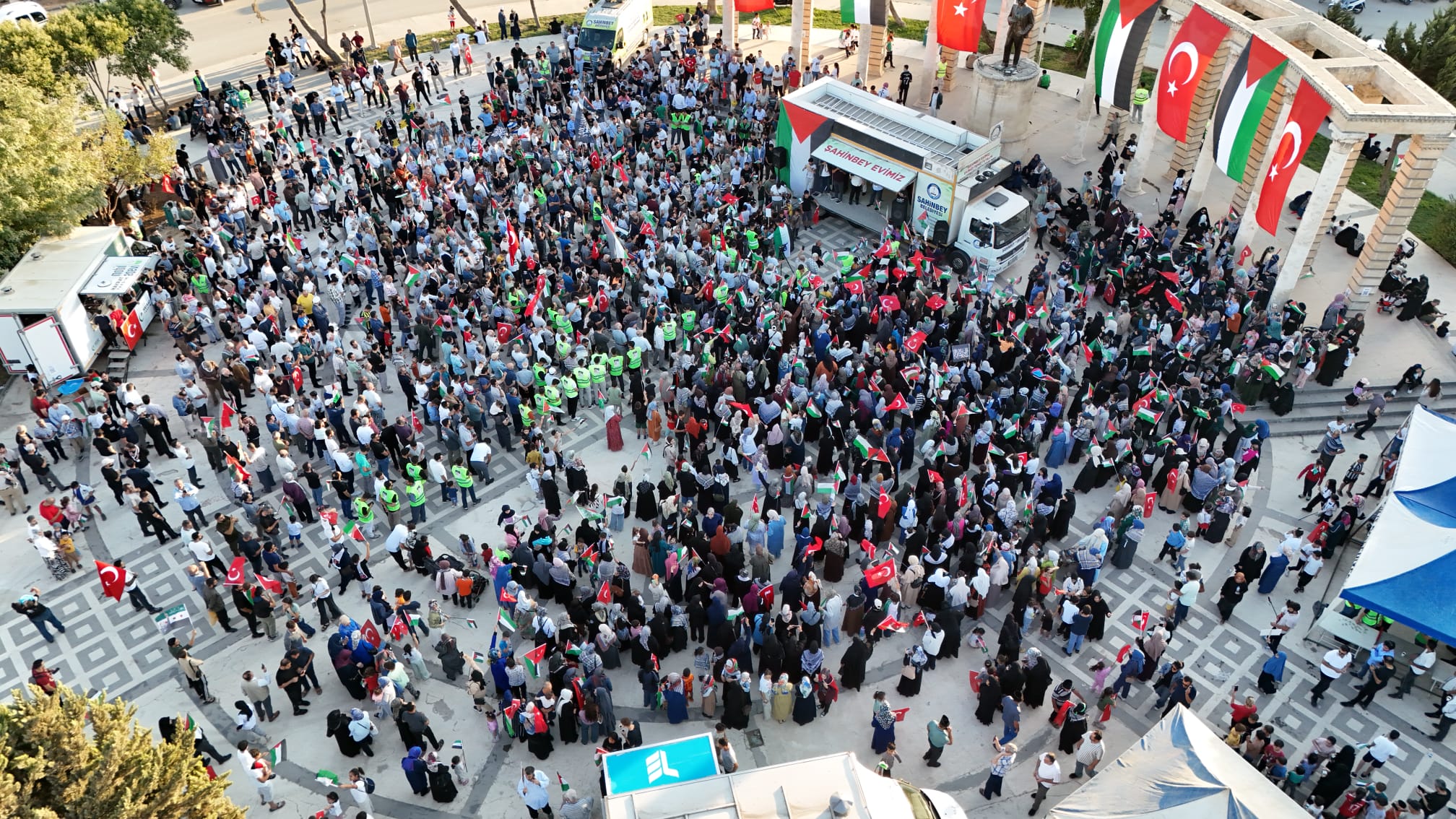 Gaziantep Kudüs Platformu ve Kilis Sivil Dayanışma Platformu öncülüğünde düzenlenen konvoya Gaziantep, Adıyaman, Malatya ve çevre illerden yoğun katılım oldu. Katılımcılar, ellerinde Türk ve Filistin bayraklarıyla “Gazze yalnız değildir” mesajı verdi.
